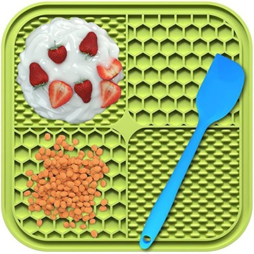 Safe Material & Big Size – Large size (8.4inch x 8.4inch x 0.4inch) green lick mats are suitable for large medium small dogs. The lick mats for dogs is environmentally friendly, material safe & durable.